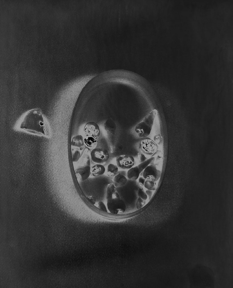 Ève Cadieux / DENTS (de la série des restes), 2002, impression jet d’encre montée sur isorel, 50,8 x 40,8 cm, protection de vinyle sur l’image, faux-cadre arrière. Procédé de base : tirage argentique /solarisation en chambre noire.