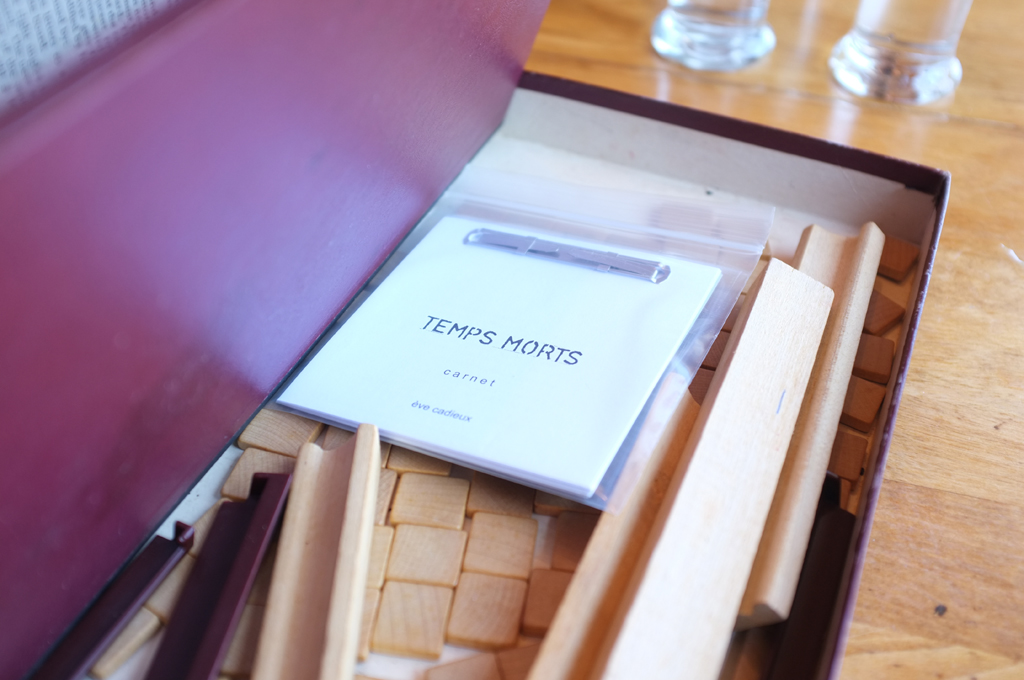 TEMPS MORTS c’est d’abord une cueillette de témoignages humains et visuels faite à la grandeur des Îles-de-la-Madeleine. Je photographie des lieux en déclin ou en voie de transformations. Le moment où une vocation se meurt mais qui donne espoir que tout est encore possible, malgré la désuétude du lieu qui s’en va… Je fais des images et je discute avec les gens sur place. De ces histoires racontées et des images accumulées, je réalise un carnet de textes et d’images. C’est un livret produit à la main, de petit tirage, que je distribue dans vingt-cinq endroits publics de l’archipel, offert à qui le trouve. Onze images accompagnent les récits réels et fictifs, comme des cartes photographiques à collectionner. Chaque publication conserve les « objets » de la recherche dans un sachet de fouille archéologique, qui rappelle aussi celui des pièces à conviction. En somme, le carnet TEMPS MORTS pose un regard poétique sur des caractéristiques sociales et économiques de la vie insulaire, aujourd’hui.