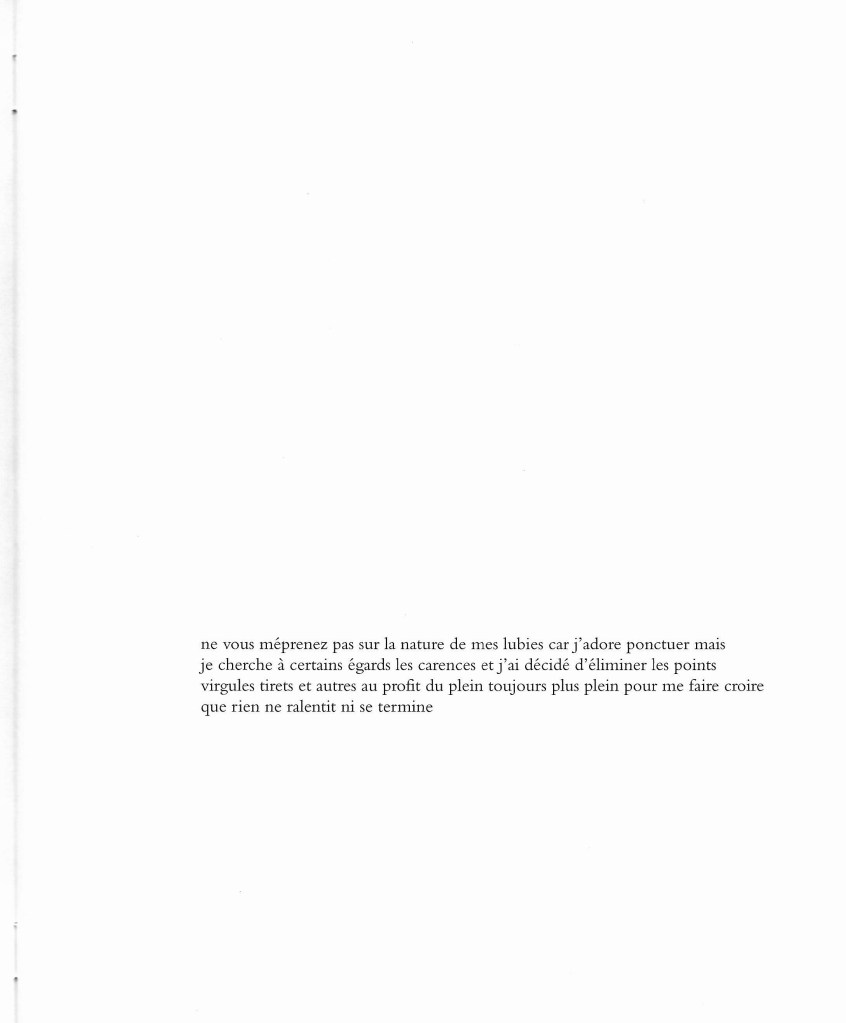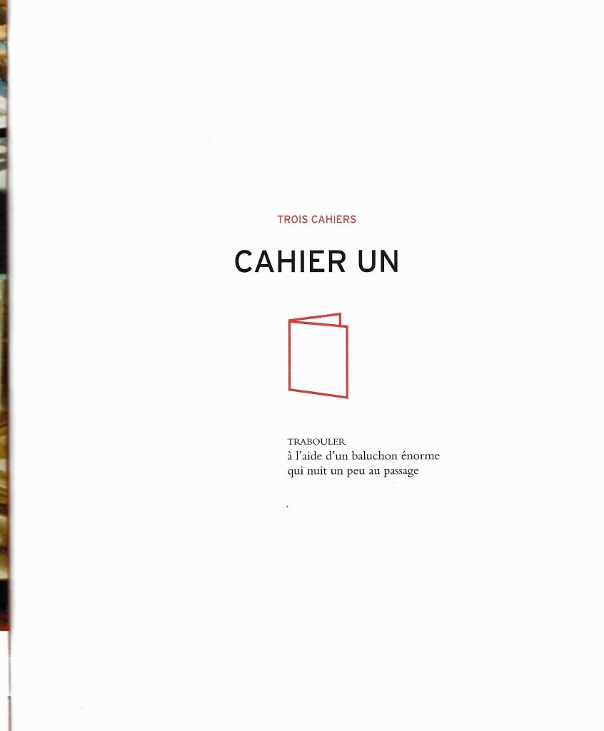 CAHIER UN Quelques textes sans ponctuation au profit du plein toujours plus plein pour laisser croire que rien ne ralentit ni se termine.